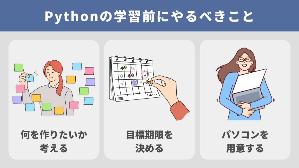 この記事では、Pythonの学習前にやるべきことや、初心者におすすめの勉強方法を解説しました。目的や期限を決めることで、学習の進め方が明確になり、途中で迷うことが減ります。