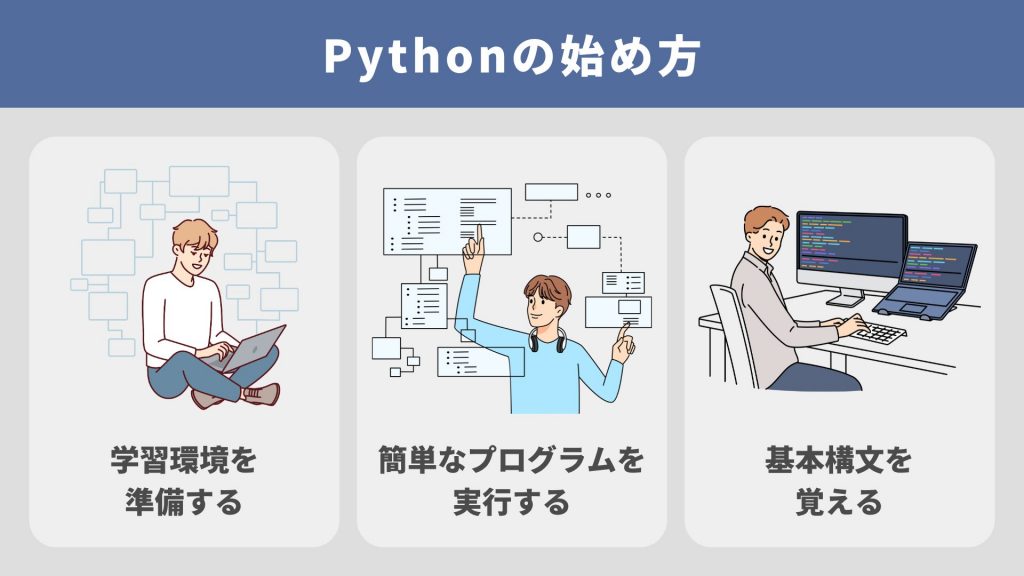 初めてPythonに触れる方は、以下のステップを参考にしてみましょう。
