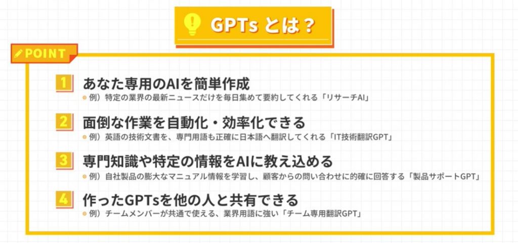4. 自分専用のAI「GPTs」を作成して業務を自動化できる