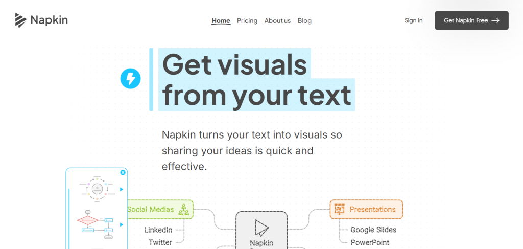 Napkin AIは、テキスト情報を入力するだけでプロフェッショナルな図解やインフォグラフィックを自動生成するツールです。業務フローの説明、比較表、プロセス図など、「文章だけでは伝わりにくい情報」を視覚化したい場面で威力を発揮します。
