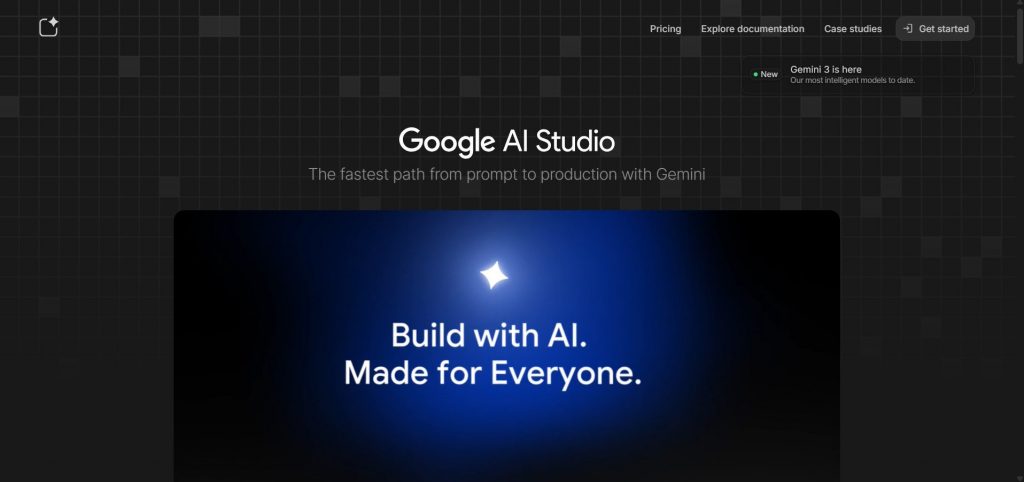 Google AI Studioは、Googleの最新AIモデル「Gemini」シリーズを無料で試用できる開発者向けプラットフォームです。Geminiの高性能モデルに、API経由でもWebインターフェースでもアクセスできます。