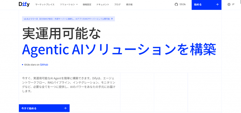 Difyは、プログラミング不要で自社専用のAIアプリケーションを構築できるオープンソースのプラットフォームです。チャットボット、RAG(検索拡張生成)システム、AIエージェントなどを、ドラッグ&ドロップの操作だけで開発できます。