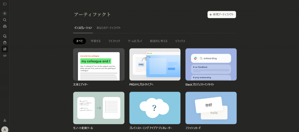 Artifacts(アーティファクト):生成物のプレビューやWeb公開がその場で完結